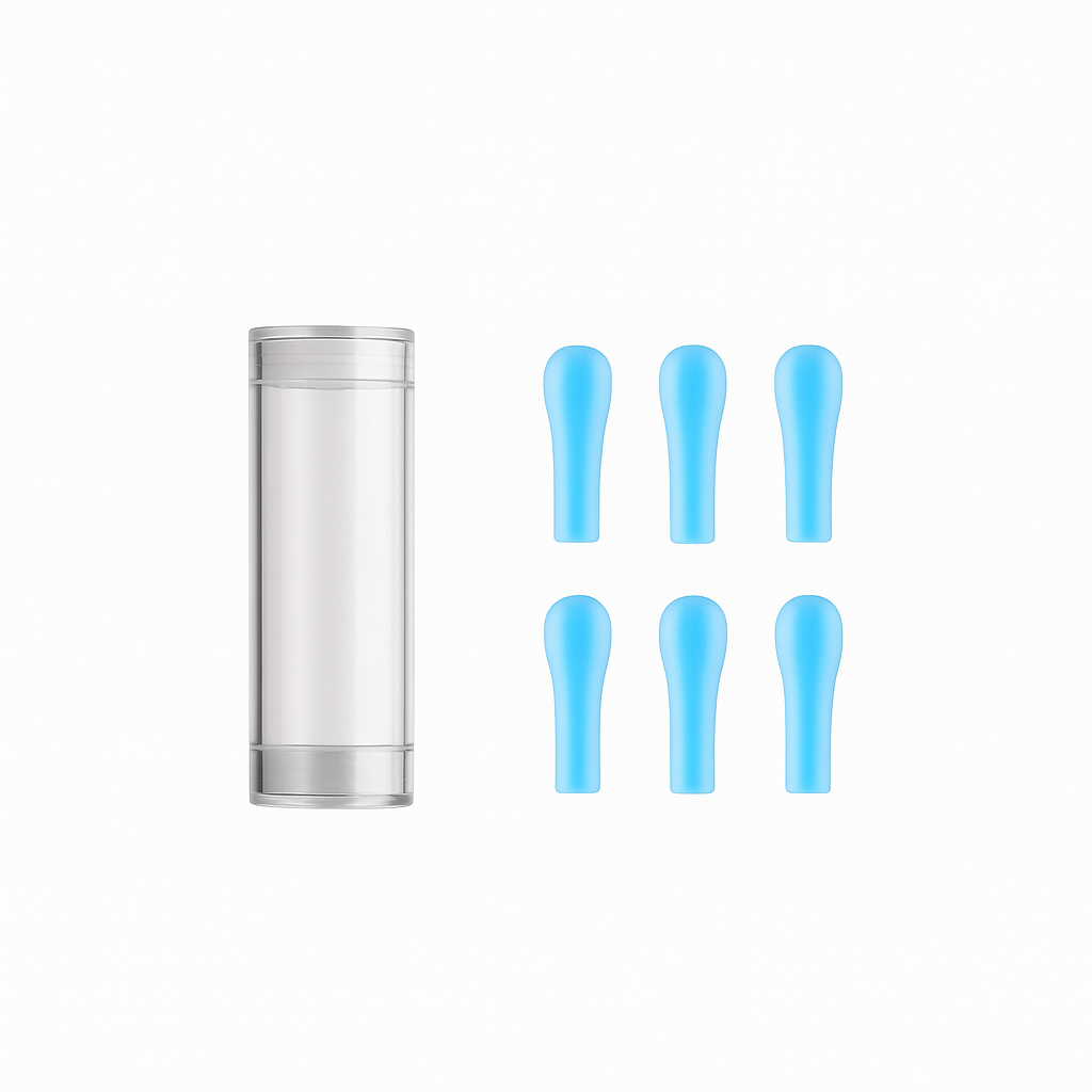 Wymienne silikonowe końcówki są delikatne dla skóry i nie podrażniają przewodu słuchowego.